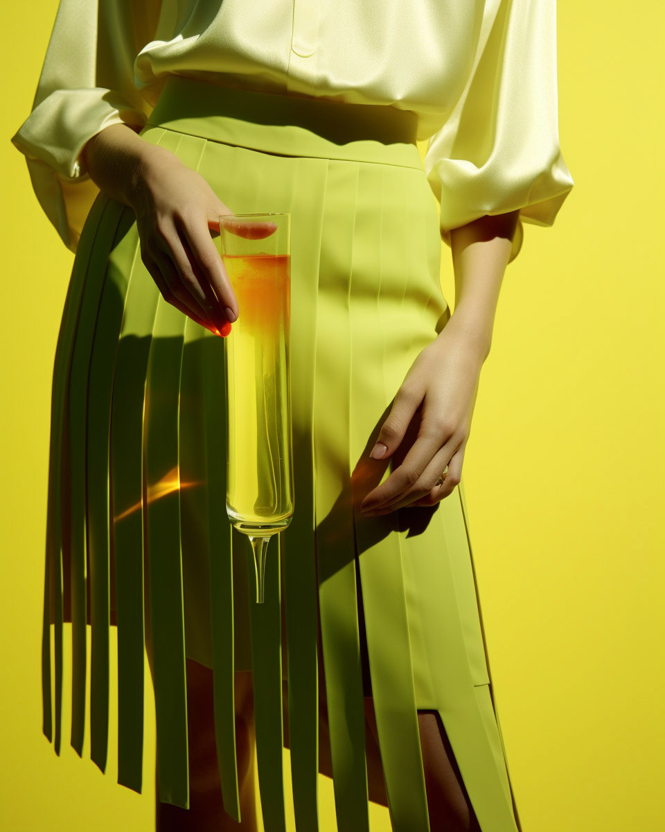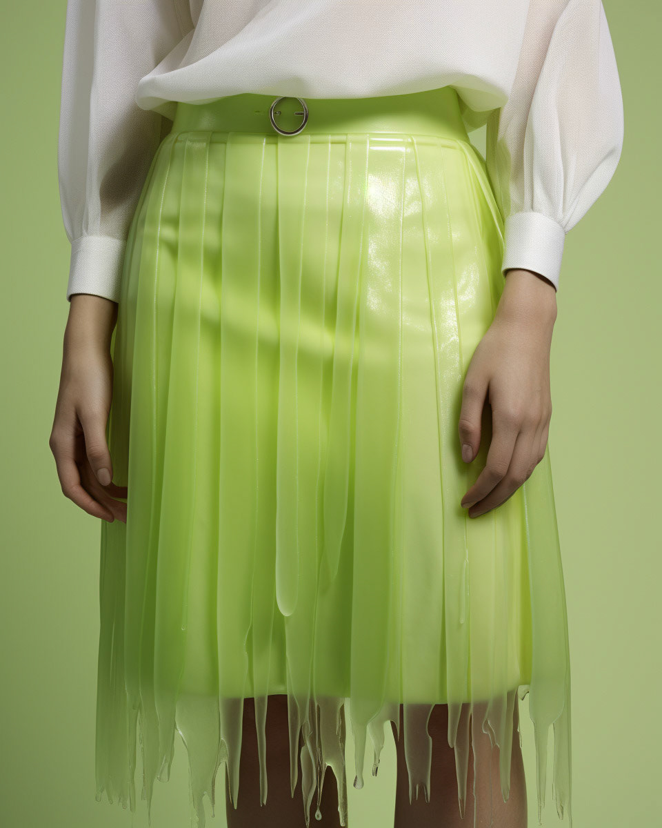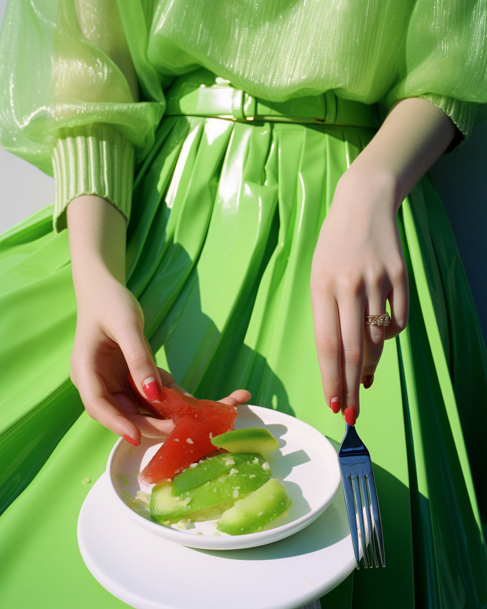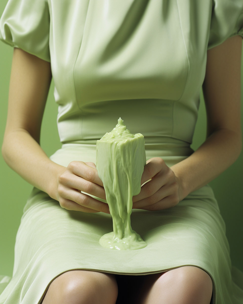 Lime green indulgence: Fashion takes on a delicious twist, evoking the sensuality of liquid ice cream. A palette that's as vibrant as it is tempting, as styles melt seamlessly into a visual treat, capturing the essence of summer's cool allure.