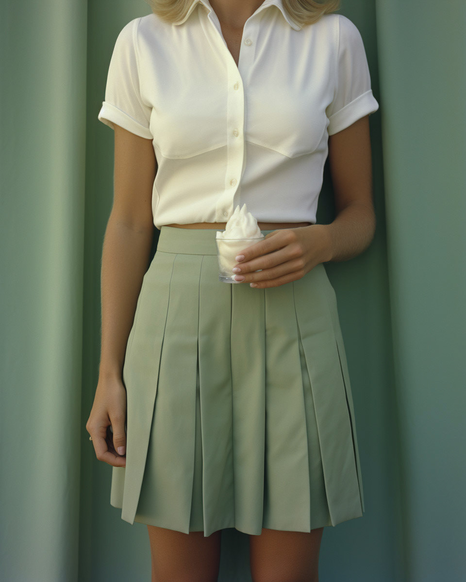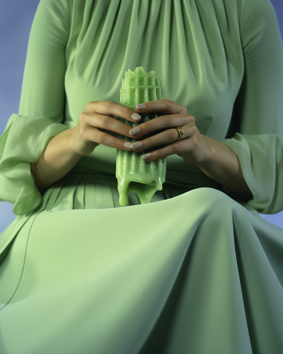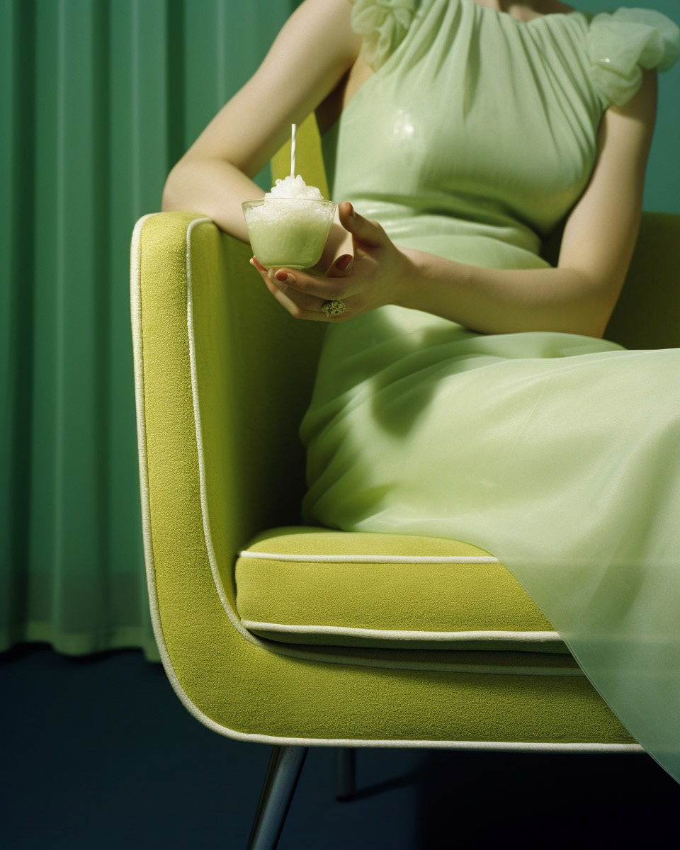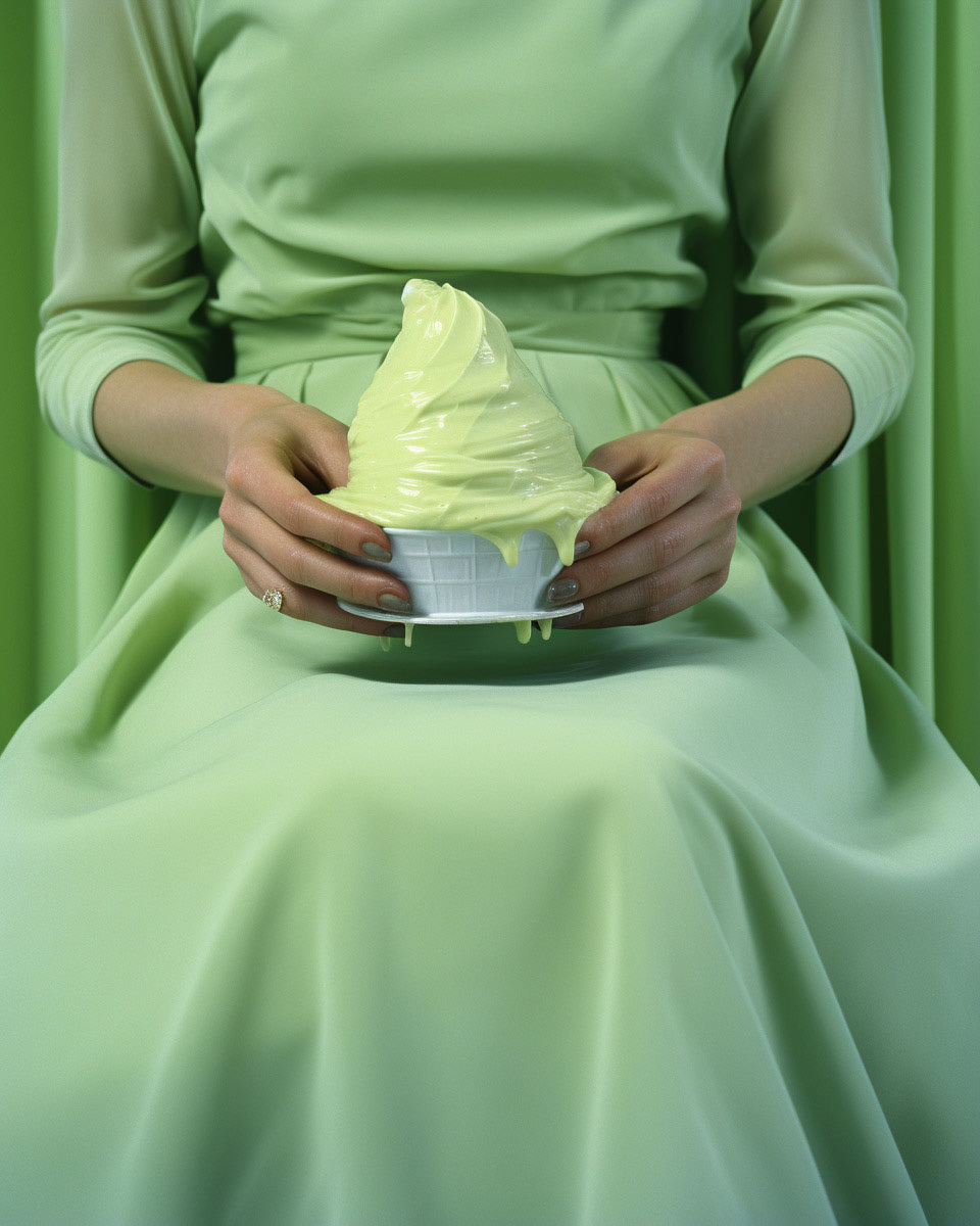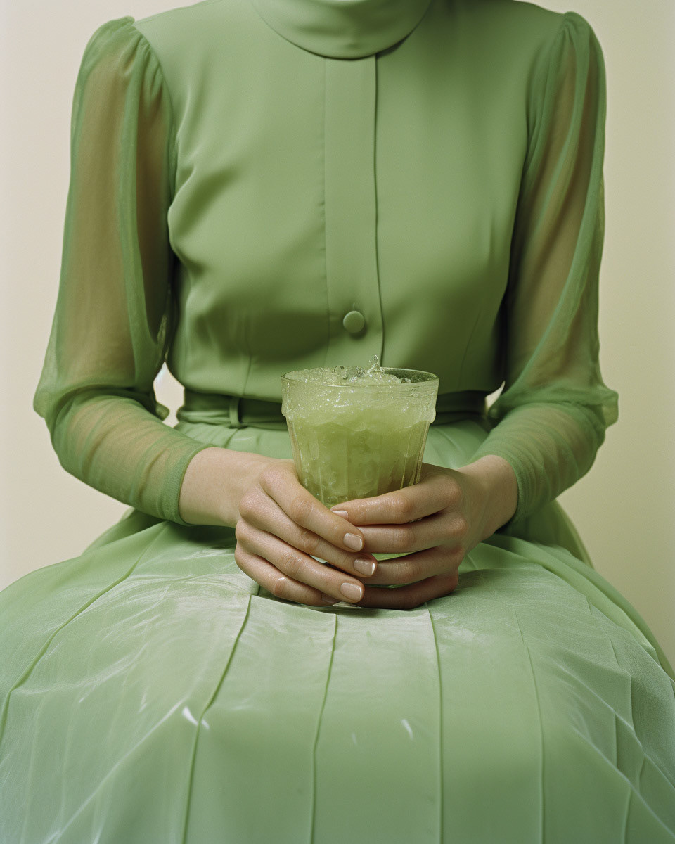 Lime green indulgence: Fashion takes on a delicious twist, evoking the sensuality of liquid ice cream. A palette that's as vibrant as it is tempting, as styles melt seamlessly into a visual treat, capturing the essence of summer's cool allure.