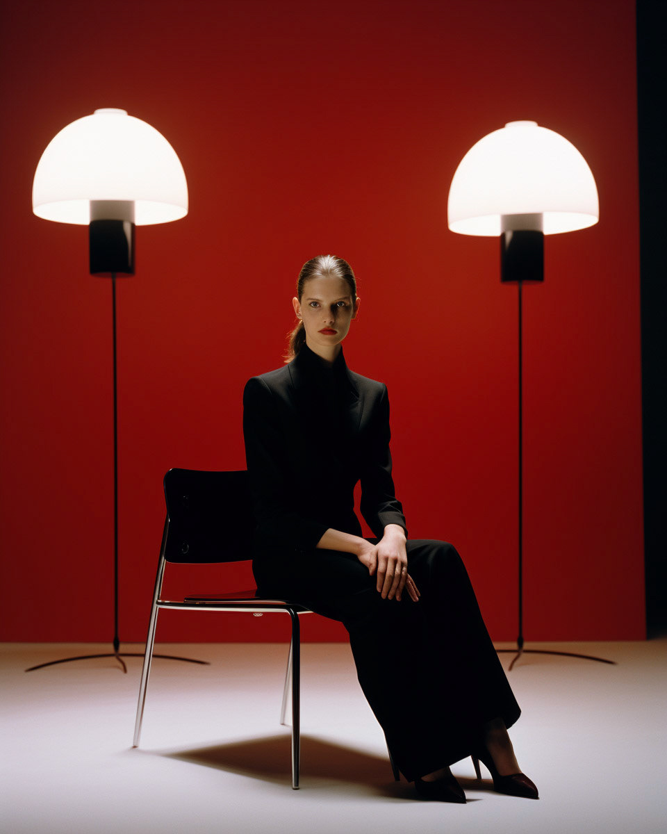 Embarking on an aesthetic journey, Asian-inspired fashion sets in serene light blue and vivid red redefine studio elegance. A fusion of tradition and modernity unfolds, creating a visual narrative that resonates with cultural sophistication within a contemporary frame.