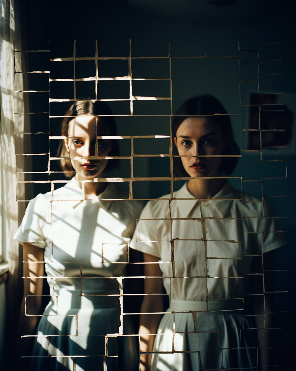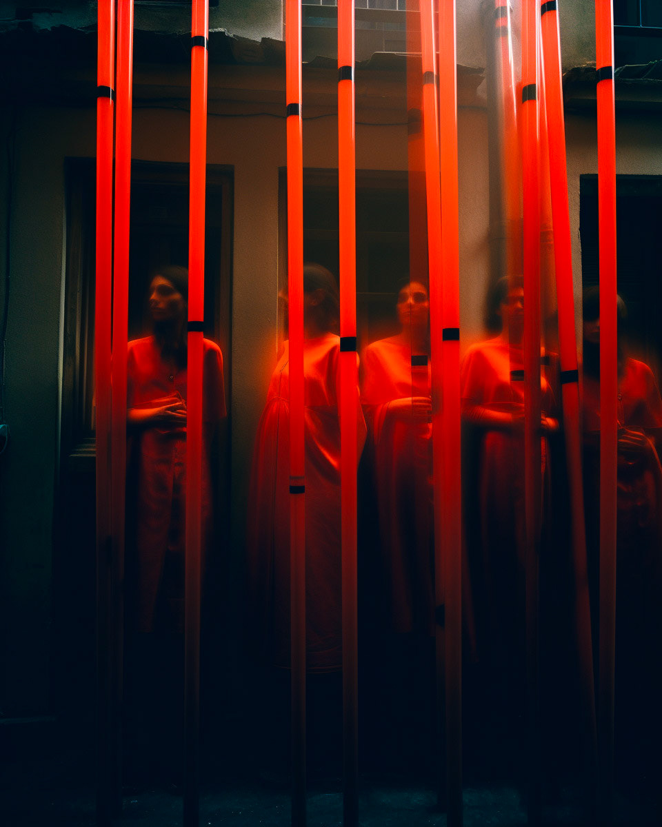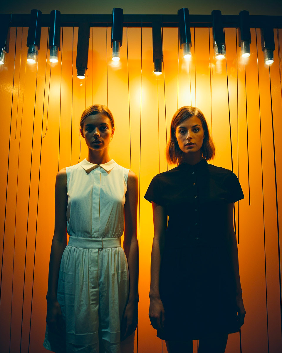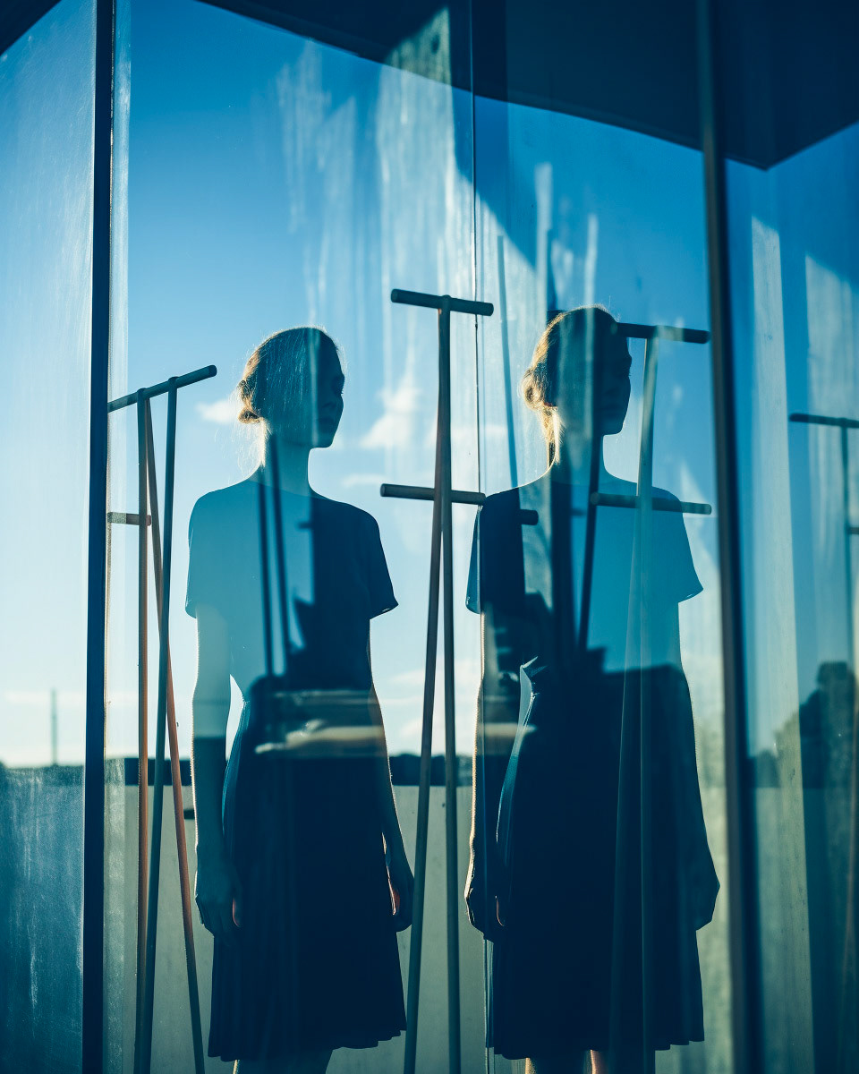 Experimental fashion photography meets nuanced vertical set design and graphic elements. A subtle interplay of form and style challenges conventions, creating a captivating visual dialogue in this evolving intersection between disciplines.